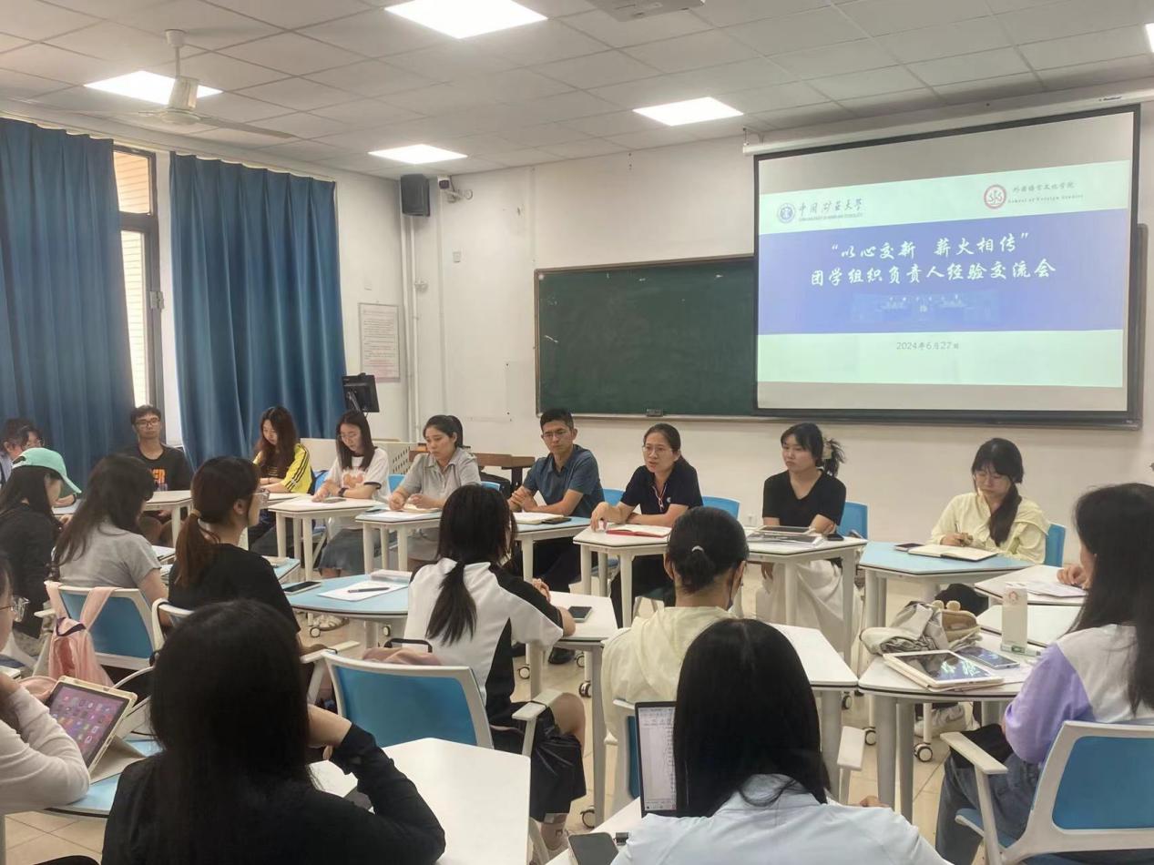6月27日下午,我院在文科楼B309 举行“以心交新,薪火相传”团学组织负责人经验交流会。院党委副书记朱正中,全体专兼职辅导员以及团委、学生会、研究生会、传媒中心、心理资助中心新老负责人参加交流会。