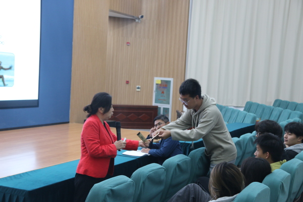 段鑫星教授通过简要的理论讲解和生动的案例分析,引导同学们树立正确的爱情观,鼓励同学们积极面对大学里的爱情。她指出,爱与幸福都是一种能力,真正的爱情应该是双向奔赴,共同成长,彼此成就,各自强大,且要相互理解、相互支持、相互欣赏,学会接纳自己,继而接纳他人。她鼓励同学们行动起来,坚守梦想,热爱生活,关爱自己,从体育锻炼中汲取营养,提升生活质量。段教授指出,只有先成为更好的自己,才能拥有美好的爱情。