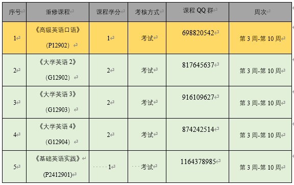 五、《大学英语》、《基础英语实践》课程每学期安排6次答疑,《高级英语口语》每学期安排4次答疑。具体时间和地点由任课教师安排和通知。