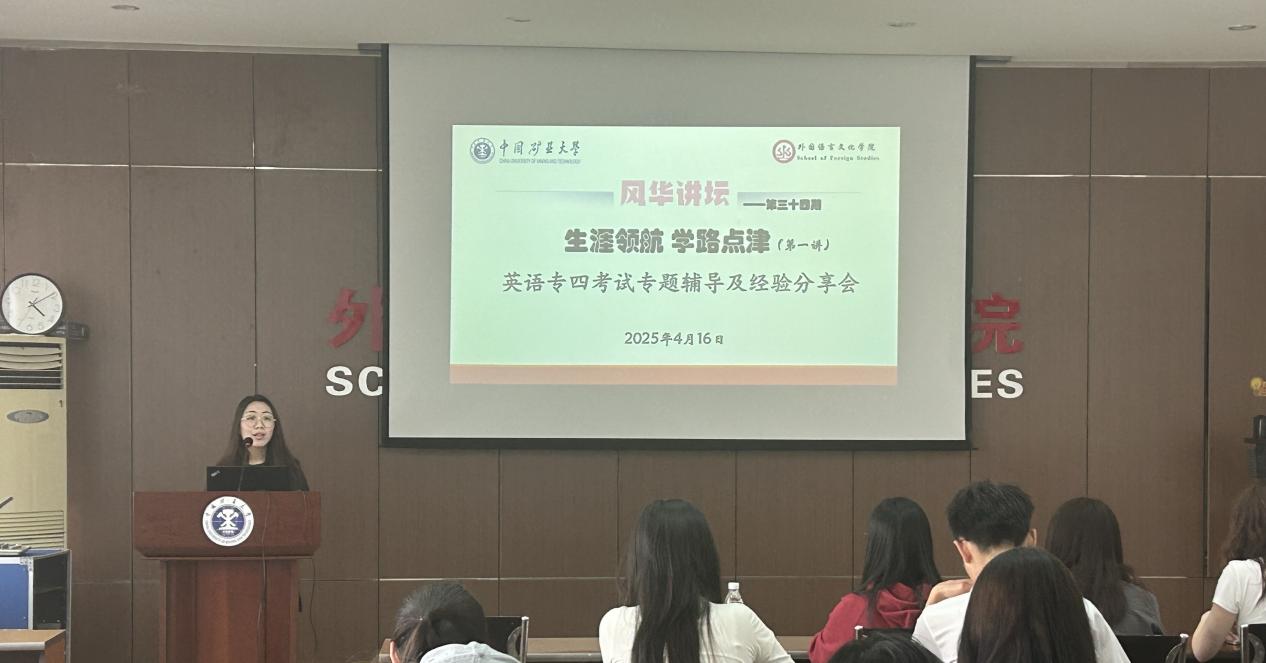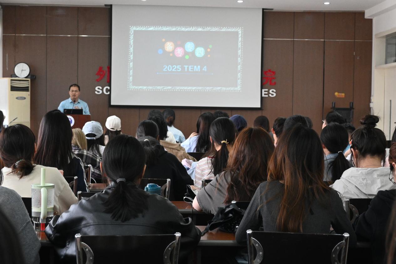 4月16日下午,巨乳人妻 在文科楼B508会议室举行第三十四期风华讲坛之“生涯领航 学路点津”系列活动第一讲——2025年英语专四考试专题辅导及经验分享会。本次活动邀请刘会民老师作备考指导,2021级周海宁、2022级黄怡舟、2022级徐恋作经验分享。辅导员闫瑾、刘倩参加。