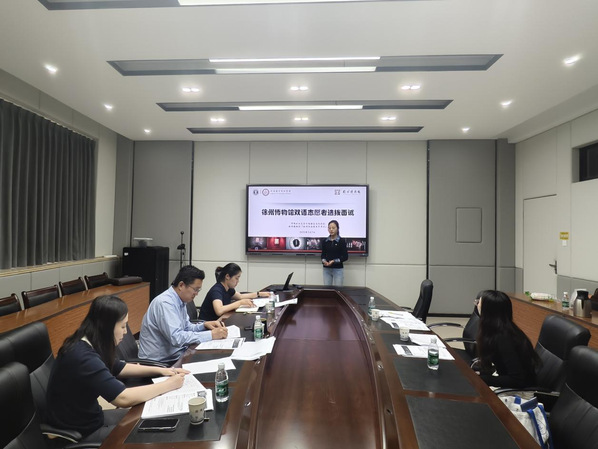 面试采取双语讲解与专业答辩相结合的形式。候选人通过中英文双语陈述,系统阐释徐州博物馆特色展区的文物价值及文化内涵,充分展现了扎实的专业素养和双语表达能力。评老师们围绕文物知识储备、跨文化传播策略及应急处理能力等维度进行综合考评,候选人在答辩环节沉着应答,展现出良好的业素养与思辨能力。
