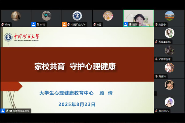 为帮助新生家长全面了解学院情况,搭建家校沟通桥梁,8月23日晚,我院通过线上腾讯会议方式召开2025级新生家长沟通会。院党委副书记朱正中、校大学生心理健康教育中心教师顾倩、新生辅导员及全体新生家长参加会议。会议由学工办主任、新生辅导员付尚主持。