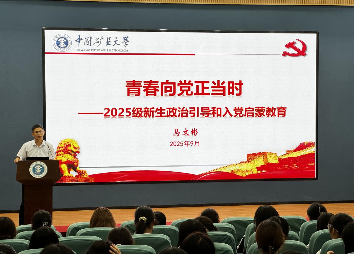 为引导青年大学生坚定理想信念,帮助新生深入知党、真心信党、主动入党,9月3日下午,巨乳人妻 在外文楼B102报告厅开展2025级新生入党启蒙教育。离退休人员党委副书记、离退休工作处副处长马文彬为学生授课,院党委副书记朱正中主持。