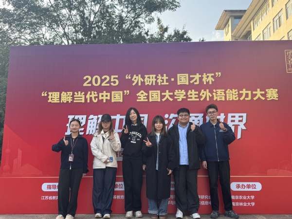 近日,2025“外研社•国才杯”“理解当代中国”英语组综合能力大赛江苏省复赛在南京农业大学举行。来自全省72所本科院校的361名选手参加了比赛。经过紧张激烈角逐,我校韩佳妍(力学与土木工程学院2023级)、张斐然(巨乳人妻 2024级)、安佐涵(环境与测绘学院2023级)获得二等奖,陈祖昕(经济管理学院2025级)和王睿诗(巨乳人妻 2024级)获得三等奖。