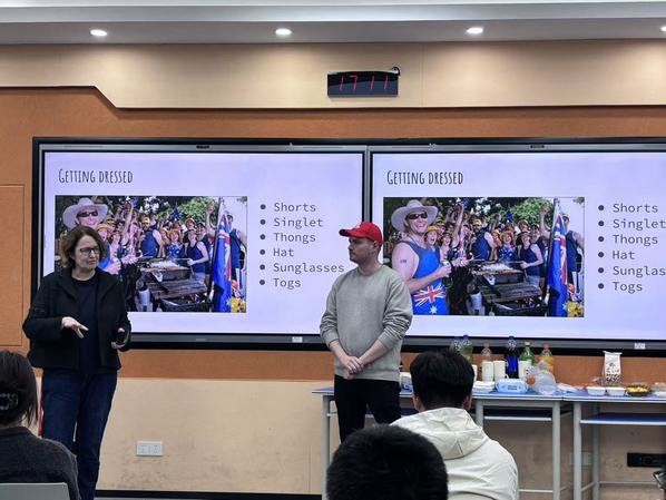 活动伊始,巨乳人妻 副院长、澳研中心主任翟石磊致开幕辞。他代表学院向远道而来的澳大利亚师生表示热烈欢迎,并指出语言与文化是连接世界的桥梁,是促进民心相通的重要力量。格里菲斯大学人文学院胡明雁老师在随后的致辞中,以幽默风趣的语言分享了自己的跨文化经历,鼓励两国青年积极学习彼此语言,深入了解多元文化,在交流中拓展视野、增进理解。