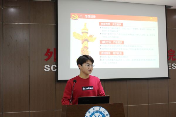 本次答辩会共分为个人陈述、知识问答以及现场评议三个环节。首先,各名答辩对象就自己的理想信念、党的知识和在校表现进行个人陈述。答辩同学积极阐述了自己的入党动机,以及向党组织靠拢的强烈愿望,并结合在校表现做出了简要的汇报。在个人陈述后,答辩同学随机抽取一个理论问题进行回答,答题内容由党章、十九大报告以及中国特色社会主义建设等内容组成。最后,评委们根据答辩学生的具体情况进行提问和点评。