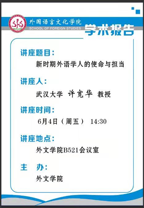 学术报告——新时期外语学人的使命与担当
