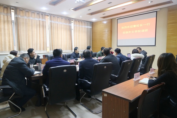 12月31日上午,曹德欣副校长带队到巨乳人妻 调研指导大学英语课教育教学工作。教务部部长张绍良、副部长石礼伟、付豪及相关工作人员陪同调研。巨乳人妻 全体班子成员,大外部负责人以及大学英语课教师代表参加调研座谈会。