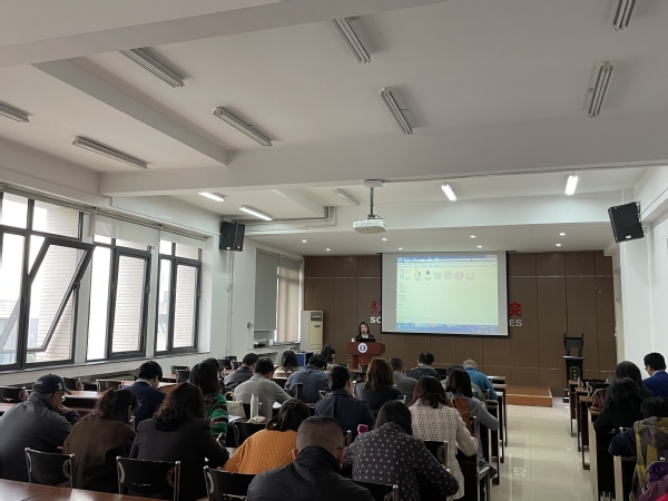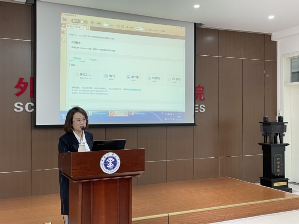 刘院长首先从创新改革角度,分析了大学英语教育改革的新局势和新方向。刘院长表示我校将从“大外语”视角提升大学英语的行业服务价值、科技服务价值、经济服务和文化服务价值出发,坚守意识形态阵地,推进大学英语多元创新教学模式改革。接下来,基于开学以来的课堂教学情况,刘院长向与会教师提出了课堂教学的要求,希望大学英语任课教师坚守教师职业准则、站稳大学英语讲台、上好大学英语课程、保障大学英语教育教学质量;并鼓励各位老师以教学团队为单位,积极参与教学项目申报,助推大学英语改革创新。