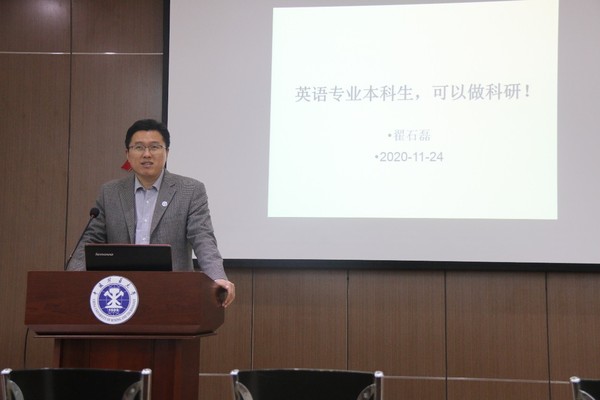 为培养英语专业本科新生的科研意识,提高其科研能力,11月24日下午4时,巨乳人妻 英文系于文科楼B508室举行了新生导学系列讲座第三场:科研意识和科研能力培养。本次讲座由巨乳人妻 党委副书记翟石磊博士主讲,2020级英文系学生积极参与。