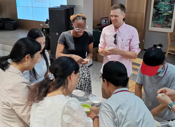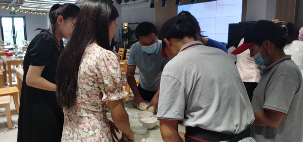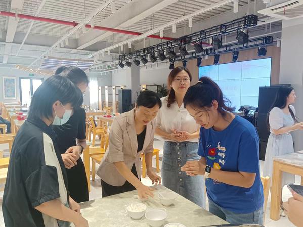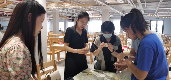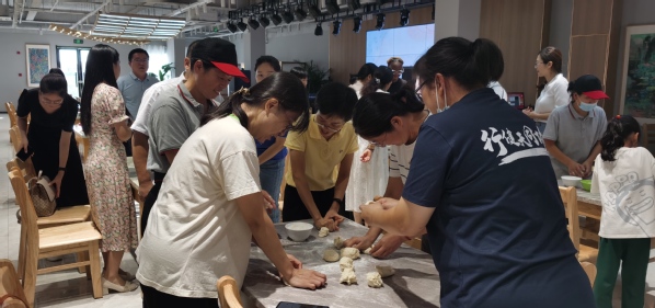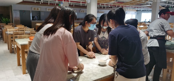 在月饼制作环节,老师和同学们大显身手,在工作人员的指导下,制作出一个个形态俱佳、福满味全的传统中秋月饼。