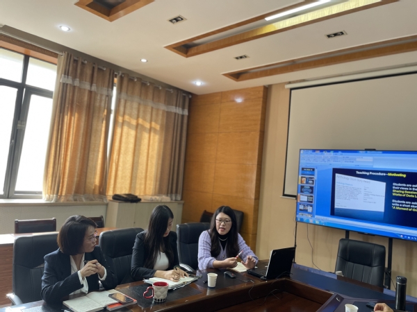 会上,2022年外研社全国“教学之星”大赛全国二等奖获奖团队首先分享了团队参加“教学之星”江苏省决赛和全国半决赛的经验,周梅老师详细介绍了在教学中融入课程思政的方法和感悟,指出课程思政应该“溶盐于水”,以思政促思辨能力的提升,以思政促教学内容的拓展。高翔老师也从教师团队的合作、课程思政的三层结构以及思政点的打磨等角度分析如何把思政隐形而自然地融入课堂教学中,同时分享了他作为督导在听课过程中的收获。英语系主任唐书哲老师指出在课程思政中要注意“避”和“拓”的问题,回避敏感的、吃不准的内容,同时勇于开拓创新。与会教师热烈讨论了自身对课程思政的理解,并分享教学中的具体经验,明确了未来的学习方向。刘院长总结时指出,各位教师应以课程思政为底色,抓住外语课程“隐性思政课程”的特点,将学生的语言技能培养和价值塑造结合起来。从中西文化差异、加强文化身份认同出发,培养学生的批判性思维,实现课程思政突围。