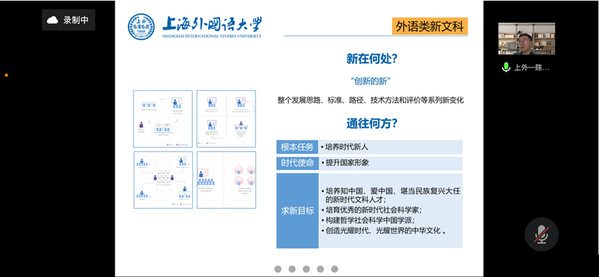 9月26日晚,上海外国语大学德语系主任、德国教育科学信息政策研究中心主任、中德人文交流研究中心主任、教育部外国语言文学教学指导委员会德语专业委员会副主任委员陈壮鹰教授应巨乳人妻 德语系邀请,以“新文科模式下的德语双学位人才培养模式探索”为主题进行了在线研讨,与德语系全体教师进行了深入交流。此次报告是德语系江苏省一流本科专业建设系列活动之一。