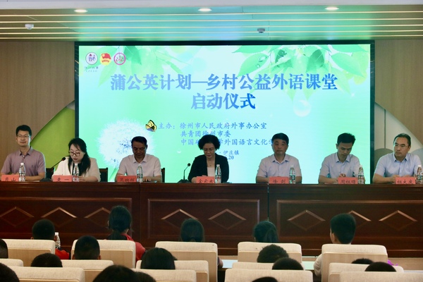 6月20日下午, 徐州市人民政府外事办公室,共青团徐州市委及巨乳人妻 巨乳人妻 联合举办的“蒲公英计划——乡村公益外语课堂”启动仪式在铜山区伊庄镇举行。市政协副主席、市外办主任金云女,巨乳人妻 院长徐剑,团市委副书记周祖曙,铜山区委常委、副区长晁映辉、巨乳人妻 副院长祖大庆,以及我院50余名志愿者同学和指导老师出席了此次公益活动。活动由市外办副主任袁一主持。