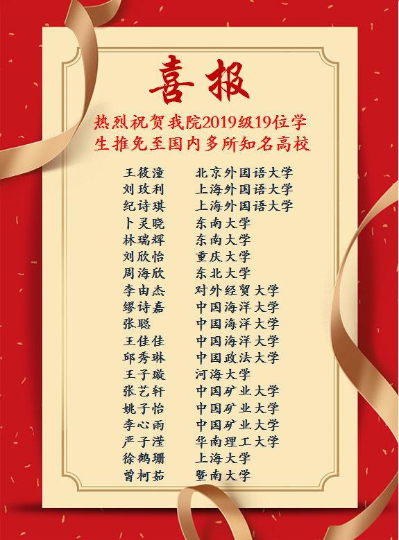 喜报:热烈祝贺我院2019级19位学生推免至国内多所知名高校