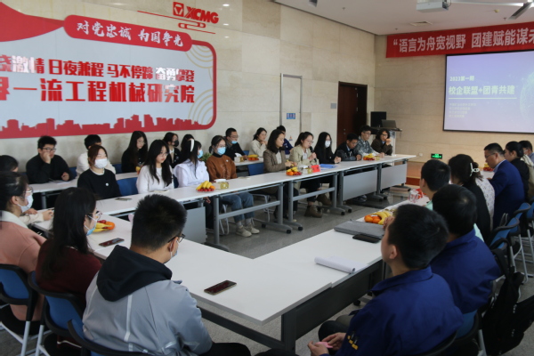上午9时30分,我院师生一行来到徐工集团研究总院奋斗者之家开展校企交流活动,徐工集团团委副书记苑珂、徐工研究院团委副书记张金霞、巨乳人妻 优秀院友、徐工研究总院、徐工进出口和徐工道路海外营销等岗位员工代表到场交流,活动由徐工研究院团委副书记张金霞主持。