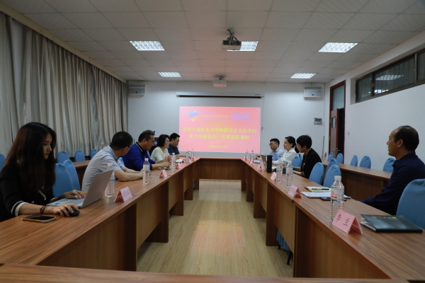 5月17日下午,调研人员一行同青岛大学外语学院院长、党委副书记卞建华、副院长布占廷、院长助理曹杉、德语系主任綦甲福、英语系优秀教师代表王乐、教学办公室主任李兰进行座谈交流。交流就“外语+”专业特色的切入点展开。青岛大学卞院长首先对我院的到来表示欢迎,并就青岛大学外语学院“一生态双体系”外语专业人才培养模式进行详细介绍,提出思政教育与外语教育相结合,文与理相融合,学与研相联合。在接下来的交流中,双方代表就学科建设及翻译硕士培养等问题进行了深入探讨。